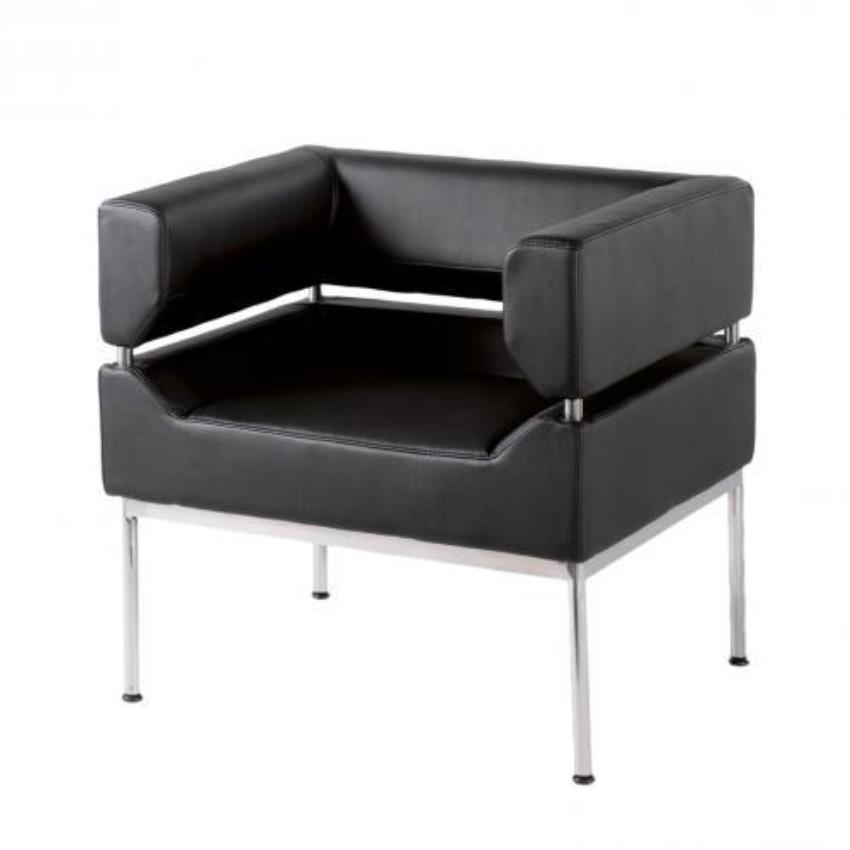 Single seater office chair with black leather seat and stainless steel body material. Suitable for office use. Minimum order quantity is 1 piece.
