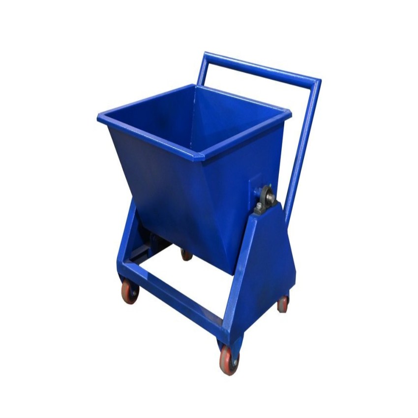 Blue mild steel scrap conveyor machine for industrial applications. Features a 300 kg load capacity, 3 feet max height, and 4 wheels for easy mobility. Made in India.