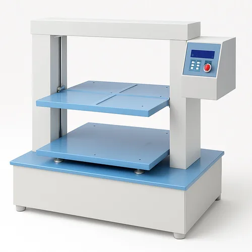 This Box Compression Strength Tester features a 1000Kgf load capacity with +/- 1% FSD accuracy. It is equipped with 4 load sensors and a 1.5 hp induction motor, operating at a test speed of 12.5 mm/min.