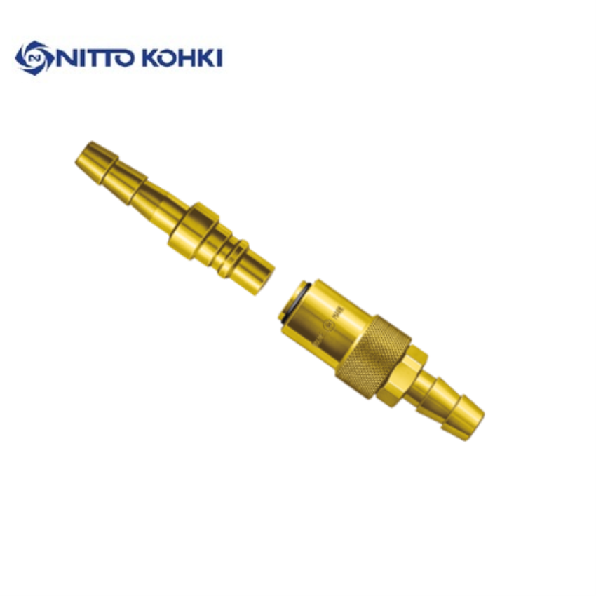 Brass mold coupler with thread connection and round head code. Available in 1/8", 1/4", and 3/8" sizes. Features 125% yield tensile strength for reliable performance.