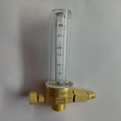 Brass welding gas flow meter for Argon/CO2. Features 05-30 LPM flow range, suitable for GAS applications. Made in India with ready stock.