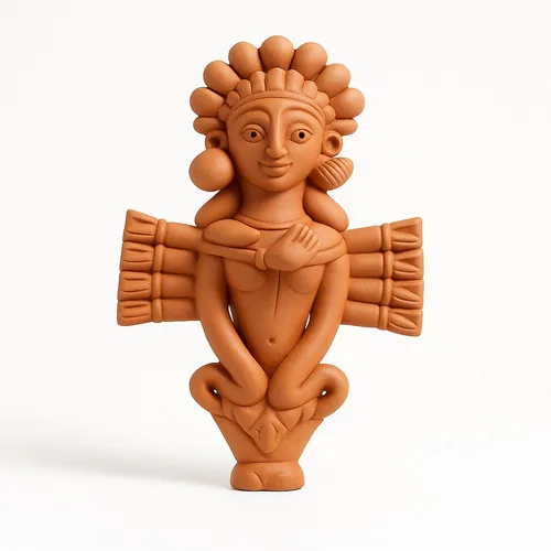 Hand-built terracotta item in a brick colour. Made from burned clay for interior decor applications. Offers a natural, earthy aesthetic for your space.