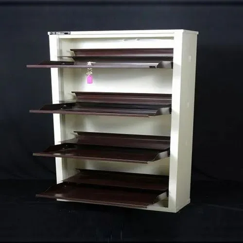 Brown 4-shelf shoe rack made of stainless steel with open storage. Offers a modern and practical solution for shoe organization, keeping footwear accessible and tidy.