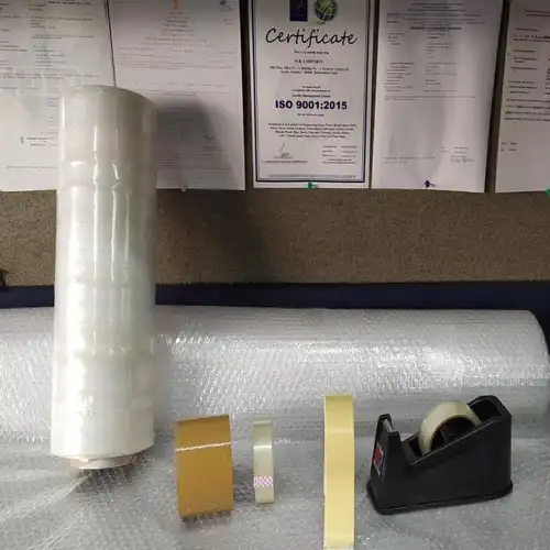 Brown and transparent Bopp adhesive tape, over 50m length, 50 microns thick. Made in India. Minimum order 500 units.