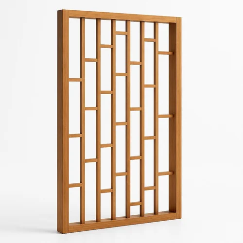 Rectangular brown wooden partition for home application. Modern design made in India. Enhances interior aesthetics with a natural, earthy tone.