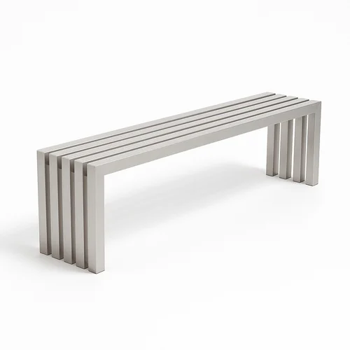 Modern, non-foldable brushed stainless steel bench with seating for 3-4 persons. Durable construction for contemporary spaces.