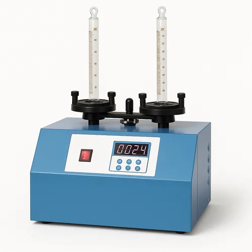 Single-phase, 220V mild steel bulk density apparatus in blue. Model HTLP-075, designed for hospital use. Packaged in a box.