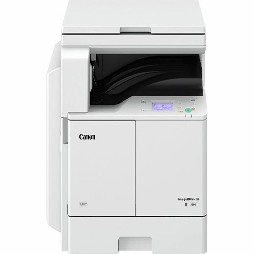 This Canon Ir 2206 multifunction laser device provides black & white copy, print, scan, and fax. It features a touchscreen and USB connectivity, with a print speed up to 30 pages per minute.