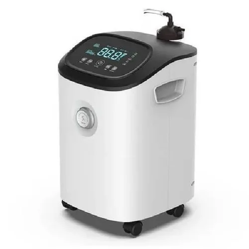 Carer 5 LPM portable oxygen machine, 93% purity. Operates on AC220V, consuming 450VA. Dimensions 33x34x53cm, weighing 16.6kg with a sound level of 45 dB.