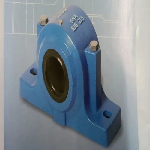 Industrial cast iron housing block. Features easy mounting/dismounting of pre-assembled shafts. Blue color. Bearing, bore size, and corrosion resistance as per catalog.