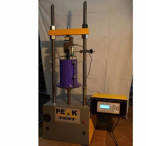 Computerized CBR testing machine with three speeds. Features a 50 KN capacity, designed for new condition testing. Made in India for comprehensive soil strength analysis.