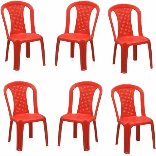 Green plastic chair without armrests, mid-back design. Weighs 3Kg, ideal for dining. Minimum order quantity of 10 pieces.