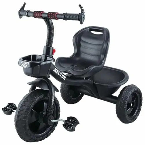 New plastic tricycle for children. Features 3 wheels and a seating capacity for one. Dimensions: L75xW46xH62 cm. Made in India.