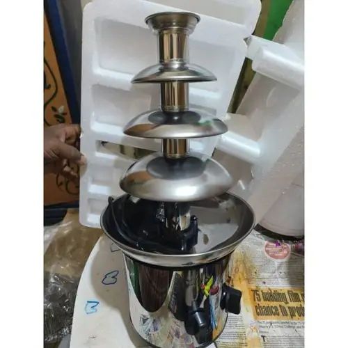 A four-step chocolate fountain machine designed for creating flowing chocolate cascades. Ideal for parties and events.