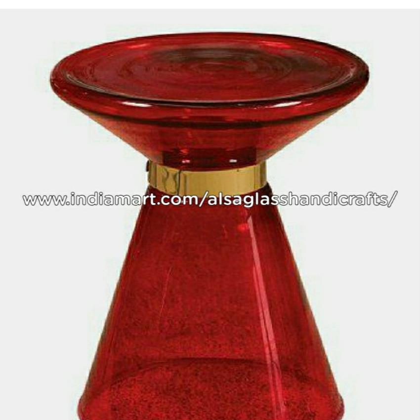 Clear Round Glass Accent Stool, Home Use, 38cm