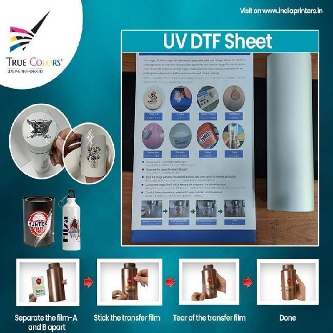 A3 clear UV DTF sticker with adhesive backing. Supplied in packets for sticker transfer applications. Minimum order quantity is one pack.