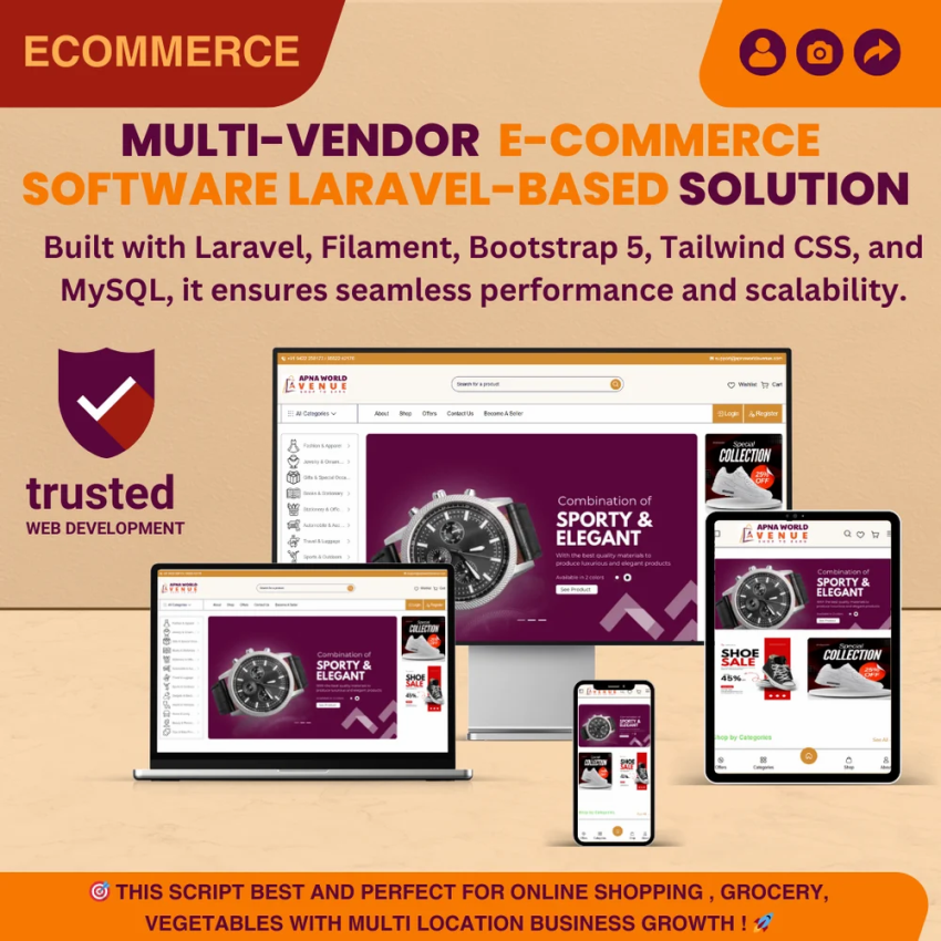 Online/cloud-based PHP/JavaScript e-commerce web development. Includes design, development, maintenance, and 24/7 support. Free demo/trial available. Project completion in 15 days.