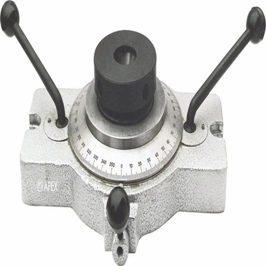 Collet Indexing Fixture for machining applications. Features A25/A42 chuck size, 12 stations for indexing, and is constructed from cast iron. Made in India.
