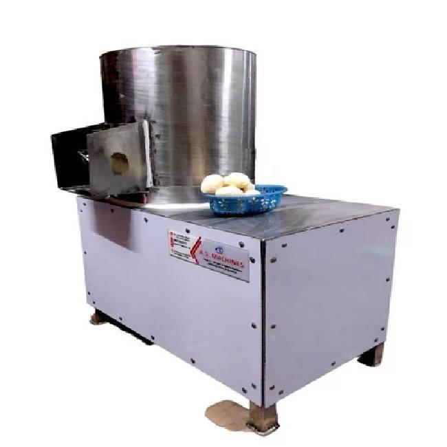 Semi-automatic batch-type potato peeler machine with 20kg capacity. Features emery stone peeler material for efficient potato peeling in commercial applications. Designed for batch processing.