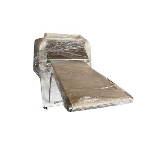 Semi-automatic three-phase dough sheeter equipment operating on 340V. Designed for commercial use, it facilitates efficient dough preparation in busy kitchens.