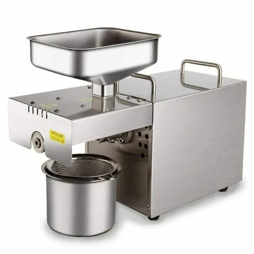 SS Commercial Expeller Mini Oil Mill Machine for mustard oil extraction. 6 bolt design, 1 ton/day capacity, automatic operation.