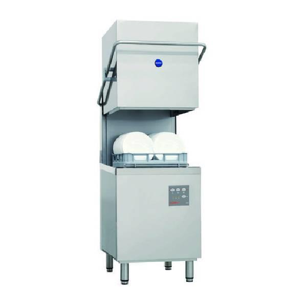 Semi-automatic freestanding stainless steel hood type dishwasher for commercial kitchens. Silver color, 50-60 Hz power, and IFB Conveyor model. Efficient cleaning for busy establishments.