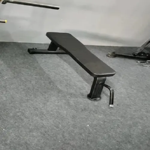 Iron flat bench for commercial gym use. Supports up to 120 Kg user weight. Coated surface finish for durability.