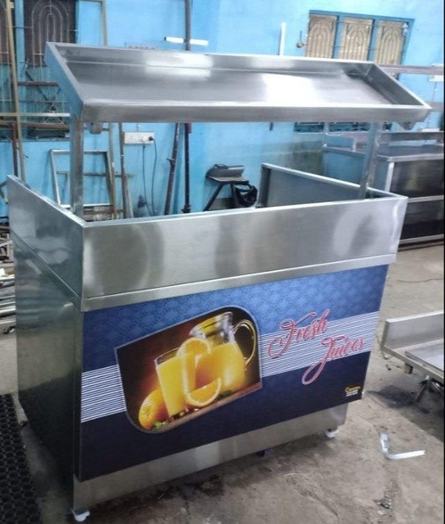 Modern grey commercial juice counter made from SS 202 grade steel. Features 1 shelf and a matte surface finish. Ideal for restaurants. Compact design.