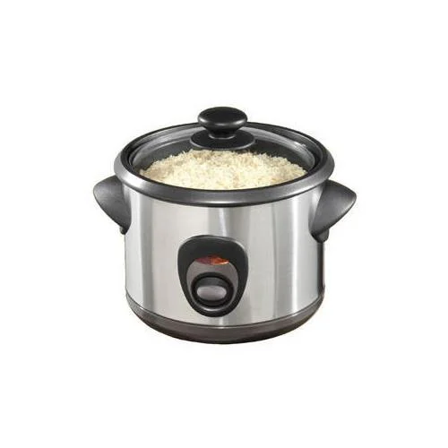 Durable stainless steel electric rice steamer, 220 Volt, ideal for kitchen and restaurant use. Powered by electricity for efficient steaming.
