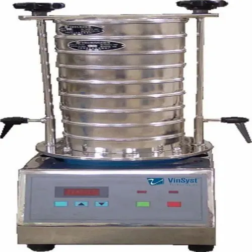 Compact laboratory sieve shaker with LED display. Handles powders and bulk materials, offering continuous mode and programmable time up to 99 minutes. Vibrates less than 5mm.