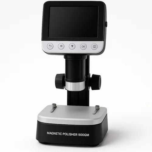 500gm capacity magnetic polisher. Designed for effective deburring and polishing of small metal parts. Compact and efficient for various applications.