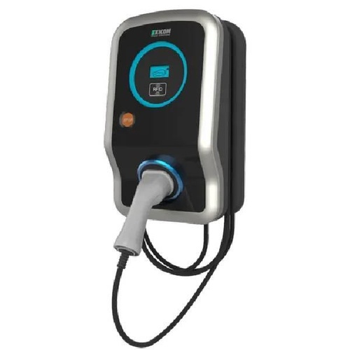 Compact Type-2 AC Electric Vehicle Charger. Available in 7.5Kw, 11Kw, or 22Kw. Features IP55, interlock, 3-pin connector, and MCB protection.