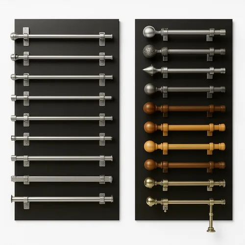 Versatile curtain rods and tracks available in SS and ceramic materials. Features SS rod type. Ideal for various window treatments.