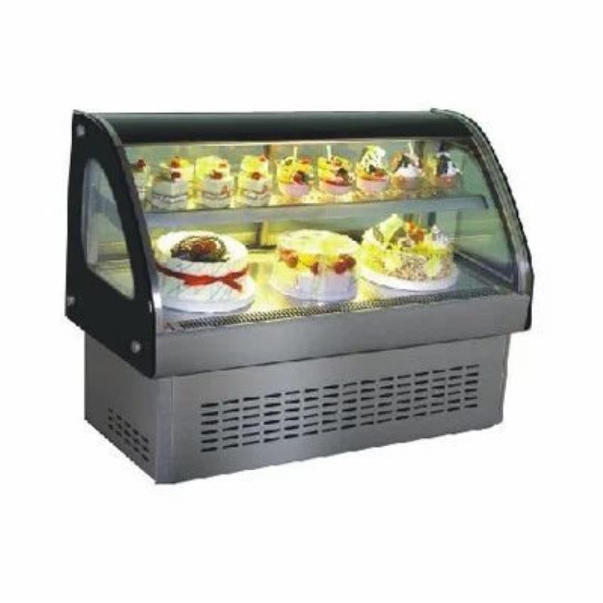 This curved display machine is designed for optimal product presentation. Its structure ensures effective refrigeration and an attractive display for various items.