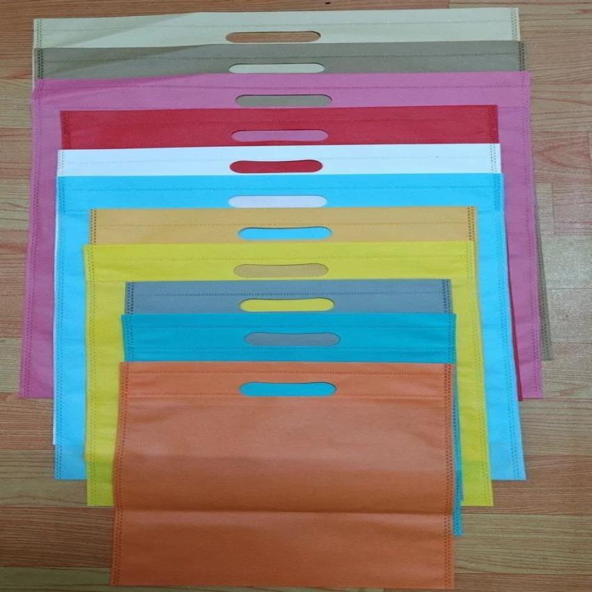 Multicolor D-cut non-woven shopping bag. Plain pattern, customizable with offset printing. Recyclable material with a matte finish. 2 Kg capacity.