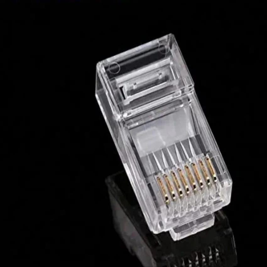 D-link RJ45 connector for Cat5e and Cat6 Ethernet cables. Ensures reliable network connectivity with durable construction. Supports standard network installations.