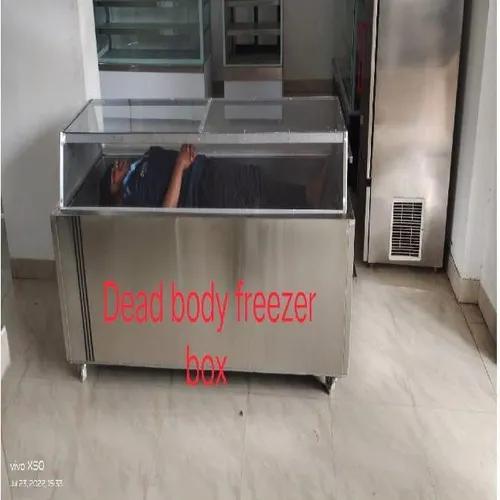 Dead body freezer box with outer 202 stainless steel body. Operates at -15°C. Size: 29"x82"x30". High-quality construction for reliable temperature control.