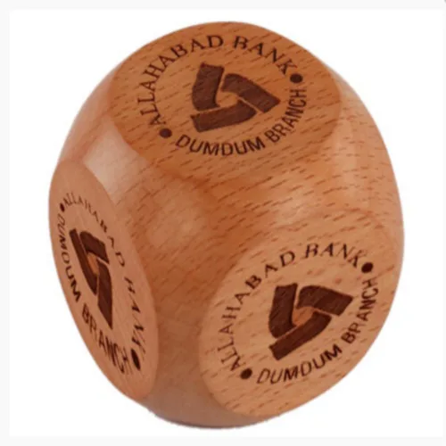 Polished wood cube paper weight in brown. Features a printed pattern and weighs 100-300g. Ideal for office use and corporate gifting.