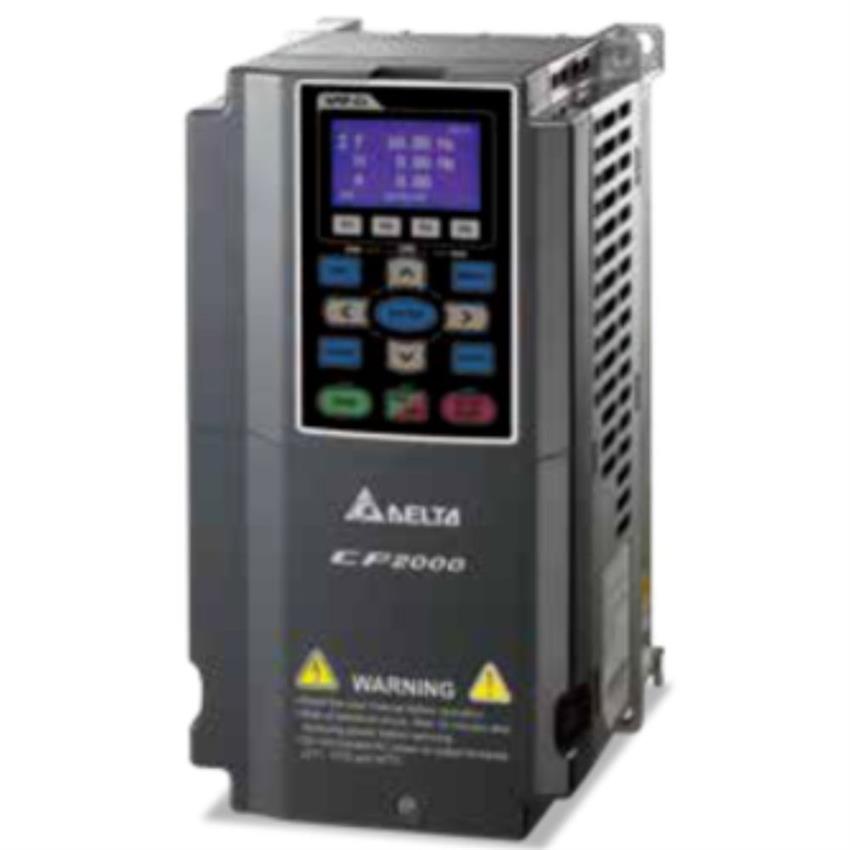 Delta VFD-CP2000 Series AC Drive, 0.75 kW to 400 kW power range. Features 3-phase input, 415V input voltage, 50-60 Hz frequency, and a 12-month warranty.