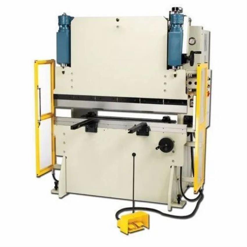 Automatic mild steel hydraulic press brake machine. Operates on 220-415 Volt, offering 50-100 mm bending radius and 30-150 Ton force capacity.
