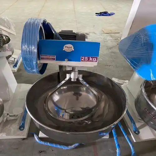 Features a 40kg SS 304 body and a 3 HP motor. Dimensions are 52x28x44 inches. Designed for efficient flour mixing.