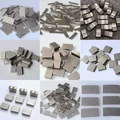 Silver diamond cutting segments, 10x20x3 mm, for sandstone applications. High production capacity of 10 million units. Made in India.