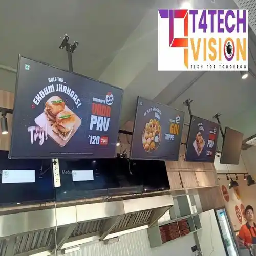 Digital menu board for advertising applications. Features polished surface treatment and customizable material, color, shape, and size as per requirement.