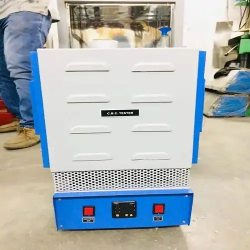 Digital Mild Steel Carbon Black Content Apparatus (CBC-165) for laboratories. Features 1150°C temperature range, 6-inch cube furnace, and stainless steel interior. Runs on 230V, 50Hz.