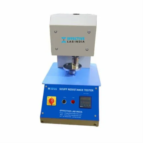 Digital Scuff Resistance Tester, BS 3110, ASTM F2497-05 compliant. Operates at 220 V AC, single phase, 50Hz. Features adjustable rub speed and multiple sample sizes for precise testing.