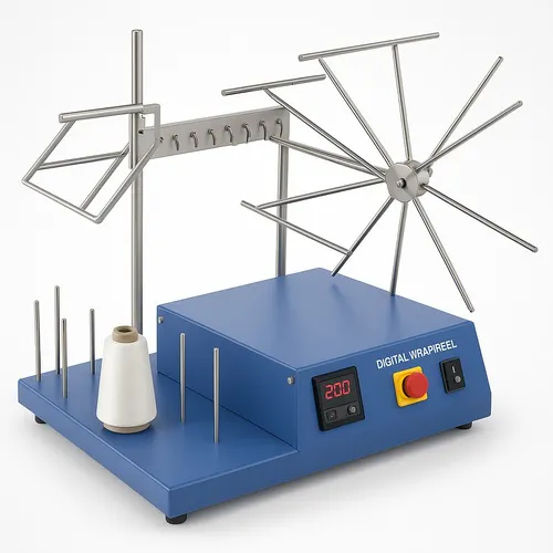 Digital wrap reel made of Mild Steel. Features 54-inch winch circumference and adjustable wrap count (1-999). Motor speed 100rpm, pre-tension 2-100 cn. Weighs 40 Kg.