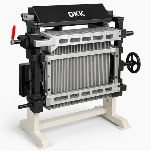 Manual industrial header insertion machine made of metal. Specifically designed for efficient insertion of headers. Suitable for manufacturing and assembly lines.