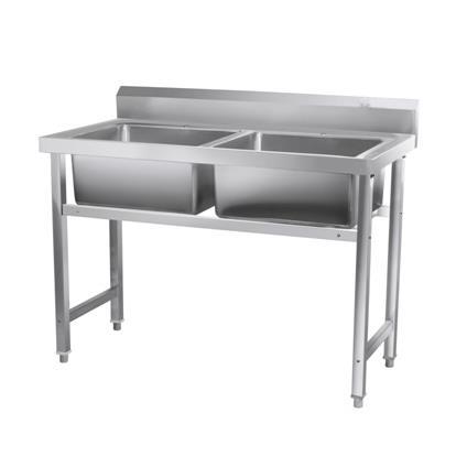 Durable two-basin sink unit constructed from robust materials for commercial use. Designed for efficient workflow and hygiene in demanding environments. Meets standard operational requirements.
