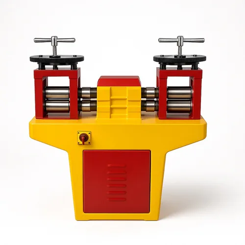 Automatic dual-head jewellery rolling machine for gold melting. Operates on 220V, 50Hz, with an 8.5HP electric motor. Made in India.