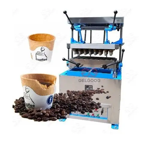 Edible cup machine utilizing biscuit powder. Semi-automatic, 380v, 3 phase power. Capacity of 240-360 per hour for industrial use.